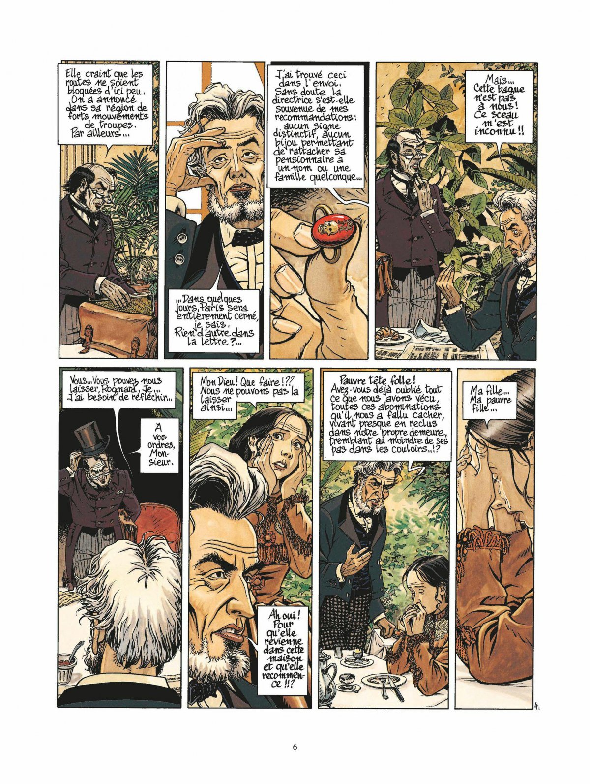Septembre 1870 : après la défaite de Sedan, l’Empire a chuté, les prussiens envahissent la France alors qu’à Paris la République est proclamée. Au collège de Moussy-en-Josas, Madame Froidecoeur voit son établissement occupé par l’ennemi. L’étrange locataire de la chambre peuplée de rats recherche la bague à tête de mort qui a scellé son union avec la mort et marqué le début du combat contre les Voleurs d’Empires. Sa colère est terrible lorsqu’elle apprend que le bijou a été remis à ses parents afin d’activer son départ du collège. La mort, la guerre, le sang mais aussi l’amour, hantent les pages somptueuses du second volume de cette série au ton résolument novateur. Le scénario tout en finesse de Jean Dufaux est admirablement servi par le dessin lumineux et précis de Martin Jamar dont le talent éclate avec cette série.