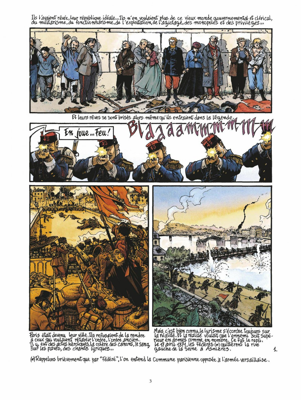« Ils l’avaient rêvée, leur république idéale... Ils n’en voulaient plus de ce vieux monde gouvernemental et clérical, du militarisme, du fonctionnarisme, de l’exploitation, de l’agiotage, des monopoles et des privilèges... Et leurs rêves se sont brisés alors même qu’ils entraient dans la légende. »En cette année 1871, la révolution menée par les Fédérés de la Commune parisienne contre l’armée versaillaise bat son plein. Paris est soumis aux bombardements, les gens sont fusillés, toutes les raisons sont bonnes pour faire le ménage... La capitale est devenue la ville des Fédérés, et ceux-ci sont prêts à tout pour empêcher le retour de l’Ordre ancien.
