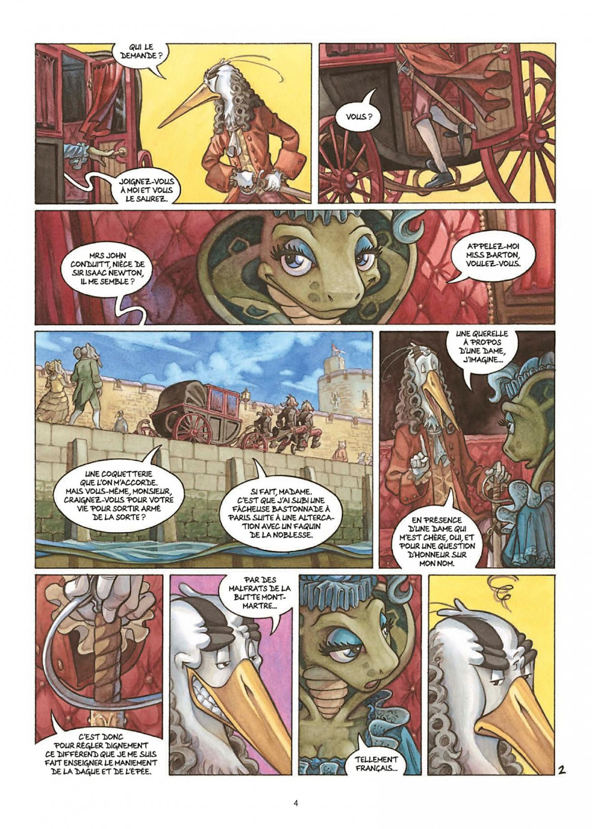 Des relations entre Newton et Voltaire, ont sait seulement que le second a assisté aux obsèques du premier. Les auteurs s’amusent à imaginer les circonstances de leur rencontre dans un cadre résolument fantastique