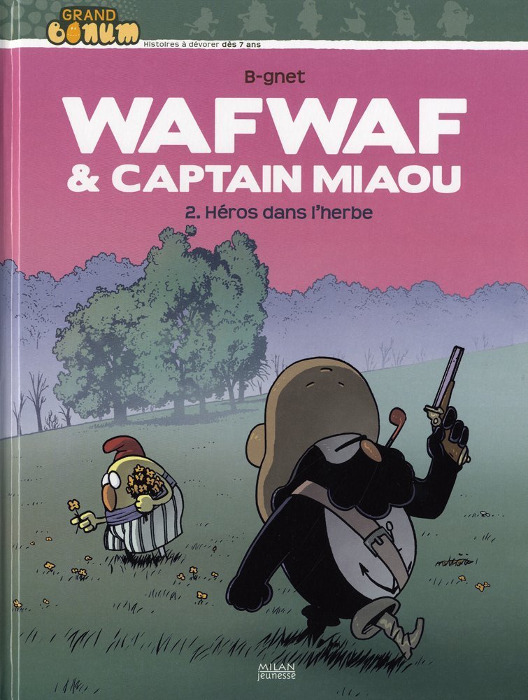 Héros dans l’herbe est le volume 2 de la série Wafwaf et Captain Miaou par B-gnet, paru en 2009. Selon nos informations, il en existe 2 éditions, dont la principale est éditée par Bayard / Bonne Presse en 2009.