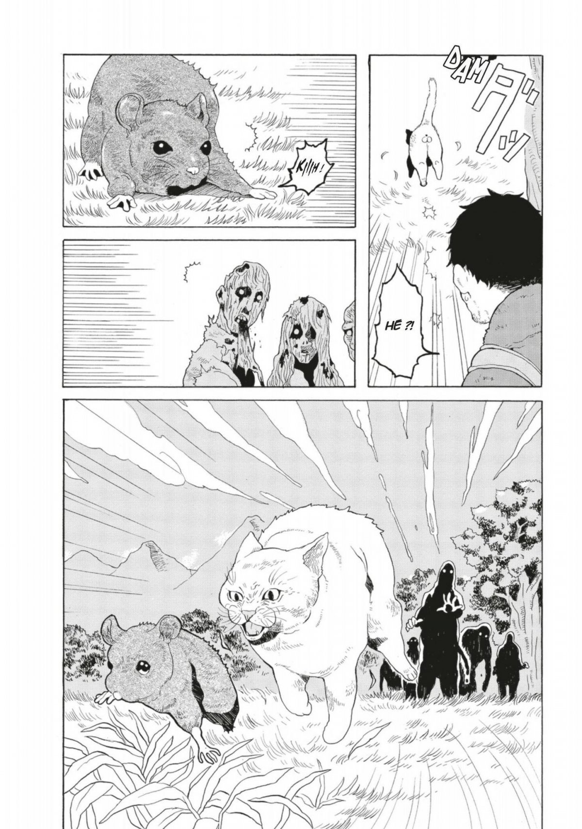Inquiet de le voir si vulnérable, Jin sauve le chat des griffes des zombies à ses trousses. Peut-être pour le remercier, le chat blanc guide Jin vers la maison de ses maitres, un couple de personnes âgées encore saines. D’abord méfiant, le mari fini par accepter d’héberger Jin pour la nuit lorsqu’il voit que ses chats lui accordent leur confiance. Le lendemain matin, le chat blanc, prénommé Yuki, se faufile dans le sac à dos de Jin pour partir à l’aventure avec lui, à la recherche de son épouse disparue…