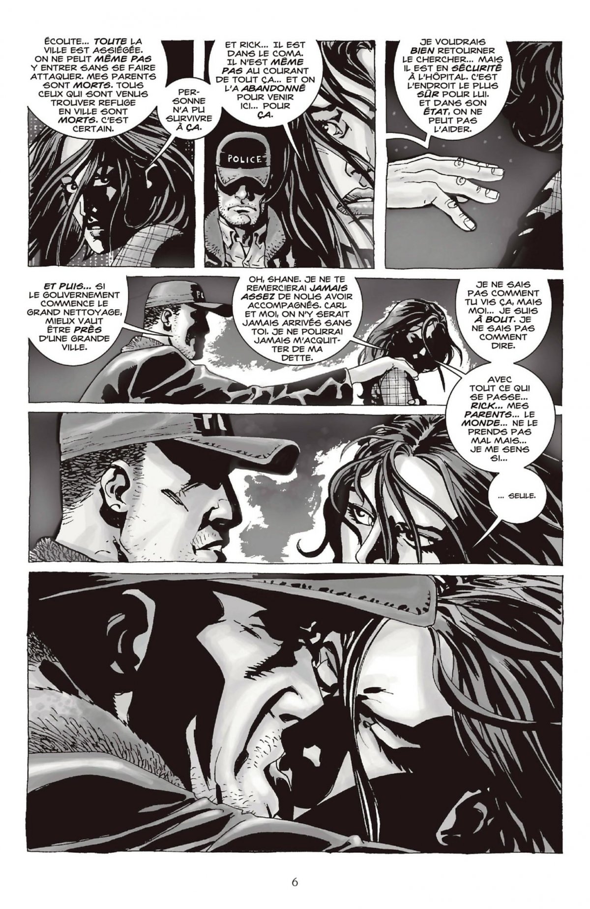 Regroupés autour de Rick, les survivants s’organisent et gèrent au mieux les tensions naissantes au sein de leur petite communauté. Chaque journée écoulée est une victoire sur l’horreur qui les entoure. Rick, devenu leur leader par la force des choses, doit à présent trouver le moyen de survivre un jour, une semaine, un mois de plus. Et cette survie ne se fera qu’au prix de lourds sacrifices...