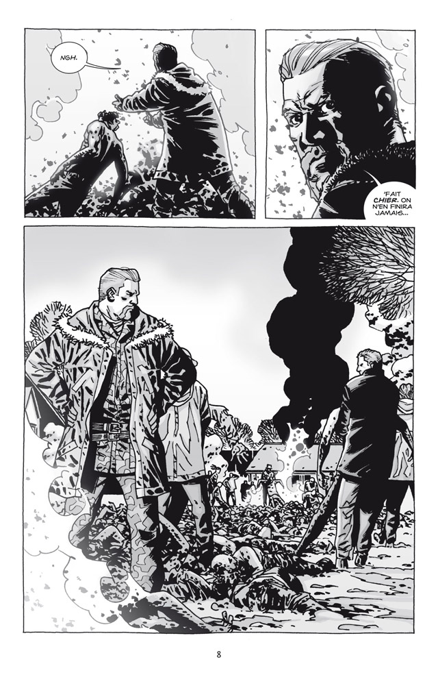 Malgré l’horreur des récents événements, les rescapés parviennent à surmonter leur douleur et se concentrent déjà sur la reconstruction physique et psychologique de leur communauté. Andrea supervise l’enseignement du tir à l’ensemble des survivants, Abraham dirige l’équipe chargée de fortifier l’enceinte de la ville. Mais Rick est sans doute celui qui a le plus de mal à se remettre. Et pour cause...