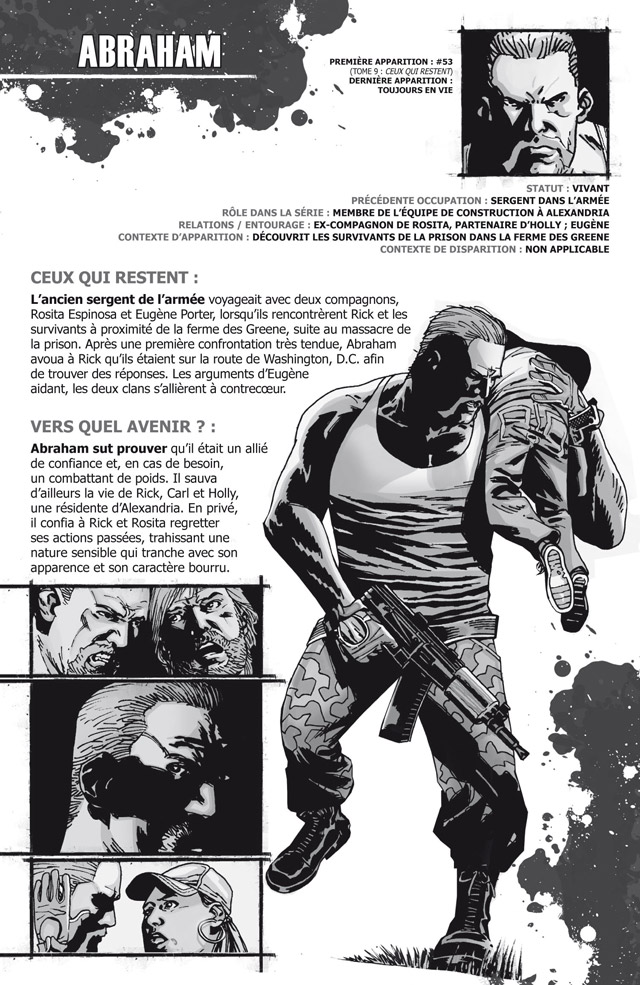 Pour tout savoir de A à Z sur les personnages de Walking Dead, le phénomène zombie en bande dessinée. Un guide incontournable pour les fans ou novices de la série.Qui est mort ? Qui est en vie ? Qui est mort-vivant ? Pour en apprendre davantage, ce guide composé de fiches détaillées par personnage, révèle détails et informations aussi bien sur le passé inconnu des protagonistes que sur leur avenir incertain face aux zombies. LE complément indispensable pour tout lecteur.
