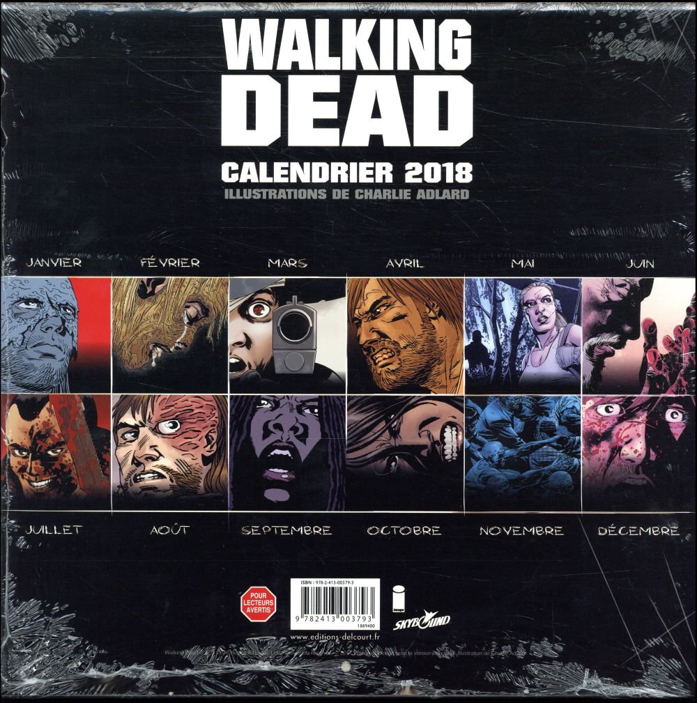 Au secours ! Fuyez ! Les mortsvivants arrivent et ne vous lâcheront plus pendant un an... ; Une sélection de magnifiques illustrations de Charlie Adlard, de citations iconiques de vos personnages préférés... et une bonne dose mensuelle d’hémoglobine !