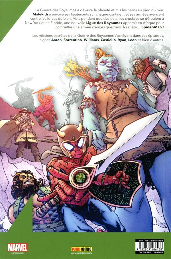 La Guerre des Royaumes a dévasté la planète et mis les héros au pied du mur. Malekith a envoyé ses lieutenants sur chaque continent et ses armées avancent contre les forces du bien. Mais pendant que des batailles cruciales se déroulent à New York et en Floride, une nouvelle Ligue des Royaumes apparaît en Afrique pour combattre une armée d’anges guerriers. À sa tête...Spider-Man