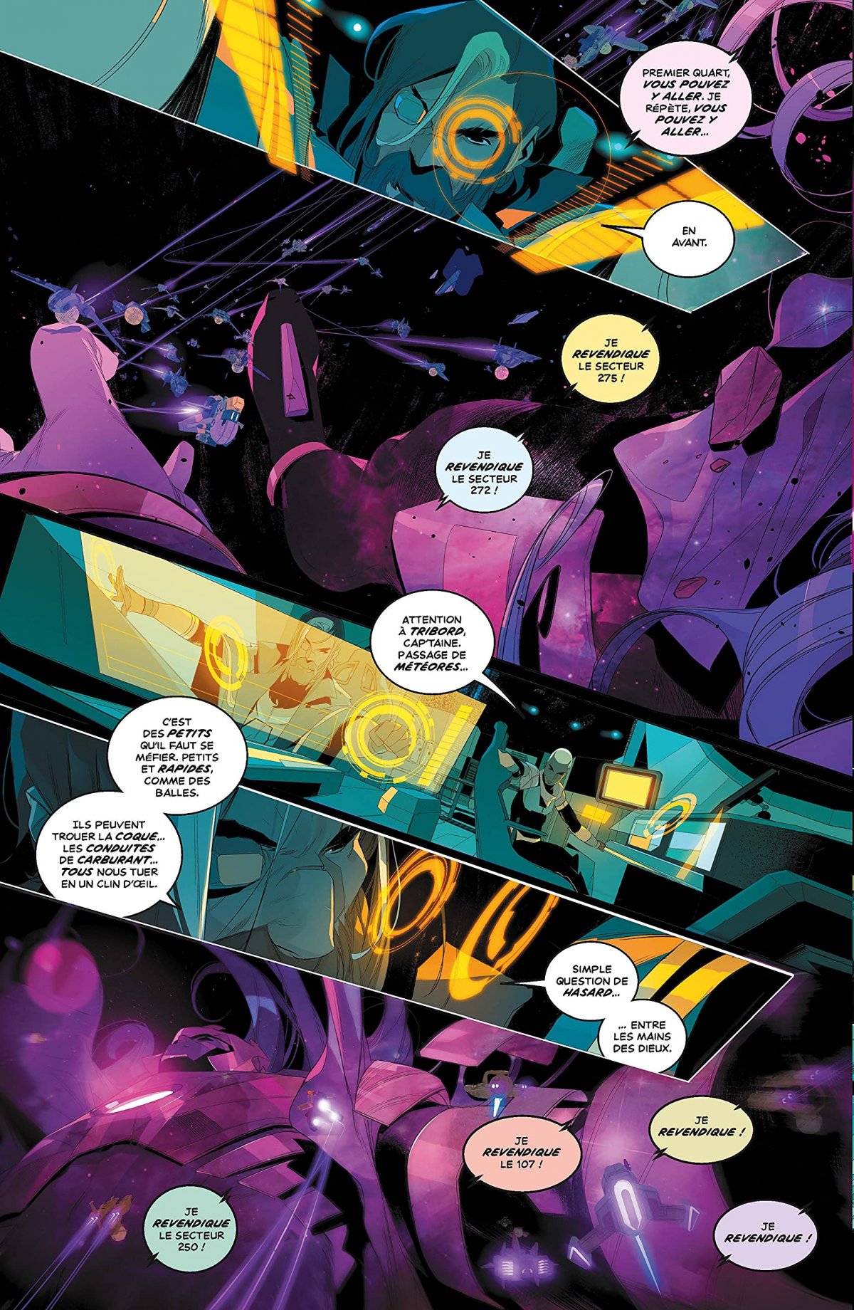 2367, aux confins de la galaxie. Dans ce futur lointain, l’humanité a épuisé toutes ses ressources et doit sa survie à l’exploitation de dieux morts flottant dans l’espace, dont les cadavres gigantesques servent désormais de matière première. Le Vihan II est l’un des nombreux vaisseaux nécropsiques qui arpentent le cosmos dans l’espoir de trouver ces divinités providentielles. Mais Georges Malik, son capitaine, nourrit une obsession : pourquoi les dieux ne se révèlent-ils que lorsqu’ils sont morts ? Pour tenter de s’émanciper de ce système gangréné par les inégalités et la pauvreté,tout l’équipage s’embarque alors dans un périple sous haute tension à la recherche d’un dieu vivant.Al Ewing (Immortal Hulk,Avengers...) et Simone Di Meo (Tortues Ninjas & Power Rangers) livrent avecWe Only Find Them When They’re Deadun space opera grandiose d’une beauté à couper le souffle. Un premier tome accrocheur et unique en son genre, tout à la fois politique et mystique.« Un space opera à l’univers unique et très prometteur. »Mighty !« Embarquez-moi tout de suite ! »Jason Aaron (Thor, Avengers, Star Wars...)« Un univers graphique emballant avec des couleurs lumineuses et parfaites. »Comicstories
