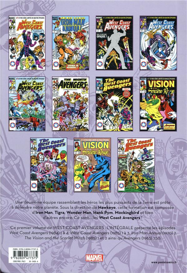 (Contient les épisodes US West Coast Avengers (1984) 1-4, Avengers 250, West Coast Avengers (1985) 1-3 et Vision & The Scarlet Witch (1985) 1-2, publiés précédemment dans les revues RCM 14 et Titans 86-88, 98 et 1 inédit)