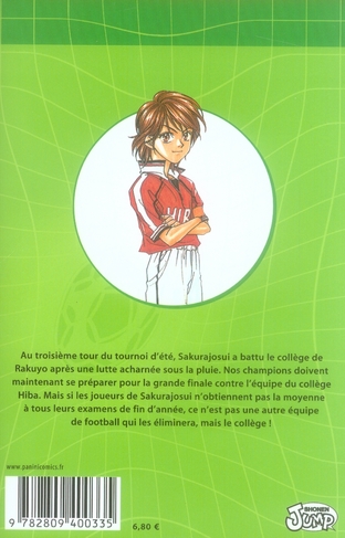 Au troisième tour du tournoi d’été, Sakurajosui a battu le collège de Rakuyo après une lutte acharnée sous la pluie. Nos champions doivent maintenant se préparer pour la grande finale contre l’équipe du collège Hiba. Mais si les joueurs de Sakurajosui n’obtiennent pas la moyenne à tous leurs examens de fin d’année, ce n’est pas une autre équipe de football qui les éliminera, mais le collège !