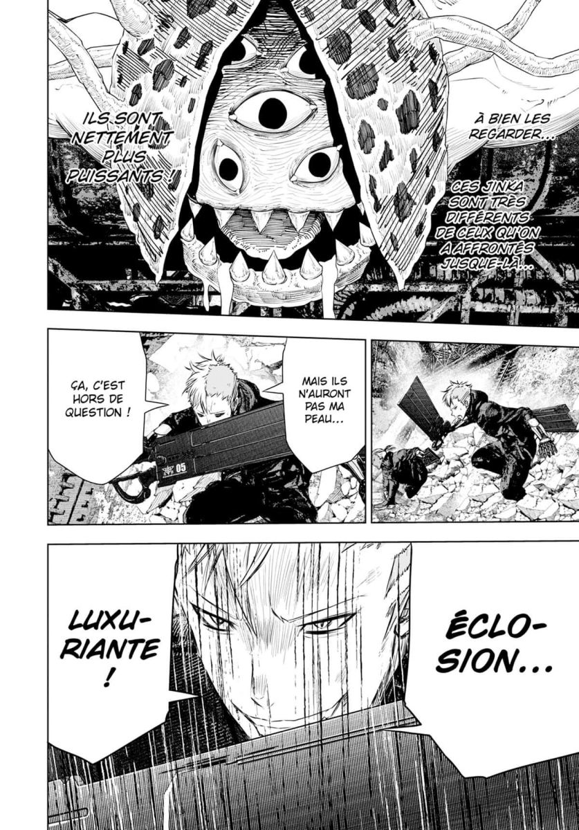 Kingo et Ayari comptent parmi les rares rescapés de la première épreuve de sélection. Mais pour être officiellement admis comme membres de l’Unité Spéciale, ils vont devoir survivre à une deuxième épreuve encore plus implacable. Les jinka auxquels ils sont cette fois-ci confrontés ne sont pas mécanisés, mais à la nombreux et surpuissants. De plus, alors qu’ils tentent d’en abattre un maximum aux côtés des autres candidats, un étrange malaise les envahit face à ces adversaires. La terrible vérité ne tarde pas à éclater : leurs ennemis ne sont autres que des vétérans de l’Unité Spéciale, irrémédiablement rongés par leur parasite floral…