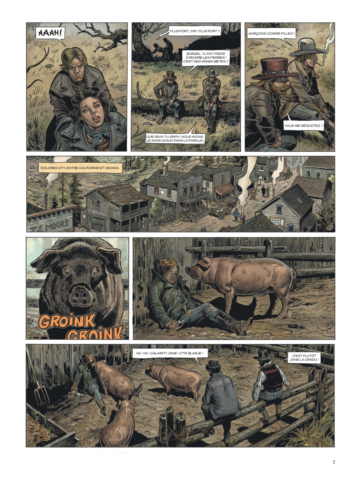 Dolores City, entre Californie et Nevada. C’est dans cette petite ville que Wild Bill Hickok, Calamity Jane et Charlie Utter se sont installés après la traumatisante traque de Smith, le tueur grimé en Indien. Devenu shérif et installé en couple, Bill vit désormais une (trop ?) tranquille vie de notable pendant que Jane, qui a renoué avec la boisson, fait trembler la ville par ses provocations ! Charlie, pour sa part, est devenu postier. Mais aucun ne s’attend au drame qui va secouer Dolores City avec l’innocente arrivée de la famille Ballou, emmenée par la jeune et très séduisante Catherine. Bandits en cavale dissimulés sous l’identité de paisibles éleveurs, les Ballou vont effet tomber sur une vieille connaissance. Et plonger la ville dans le chaos...