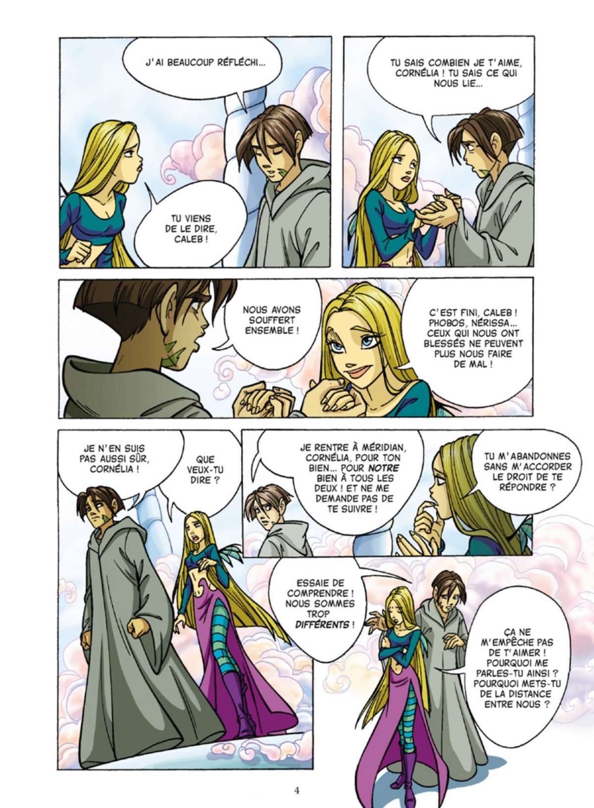Toute trace de Nérissa et de ses chevaliers vengeurs ayant disparu, Cornélia vit un combat autrement plus difficile : celui des sentiments. Car Caleb ne la suivra pas, il décide de rentrer à Méridian. Cornélia se sent abandonnée mais ses amies l’aident à passer ce moment particulièrement pénible. L’Oracle ayant demandé aux Witch de raccompagner Caleb à Méridian, Cornélia lui demande de l’exempter de cette mission douloureuse...