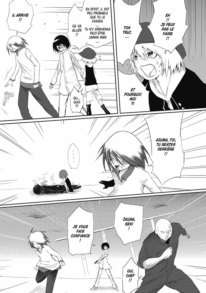 Deuxième nuit de l’autre côté du miroir pour Azuma et les autres ! Et si le démon du monde qu’ils affrontent cette fois manie l’électricité, ce n’est pas lui qui leur posera le plus de problème. Car le démon de Chesire, bien mystérieux, c’était jusqu’à lors gardé de leur dévoiler toute les conséquences qu’auraient leur implication dans cette lutte. Face à un nouveau dilemne, ils devront lutter pour survivre, autant qu’accepter leur situation. Mais parmi cette équipe, une personne semble alors embrasser sa nouvelle vocation avec joie : Azuma ! Et quand la jeune fille sourira, il se peut que le monde change à jamais...