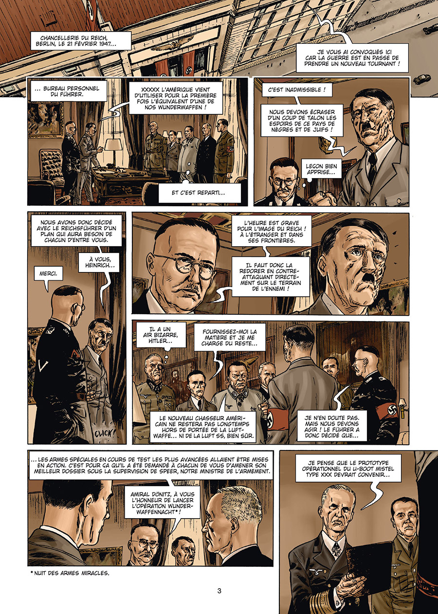Découvrez de nouvelles et terrifiantes armes de destruction nazies ! Quel aurait été le sort du monde si le Troisième Reich avait concrétisé ses plans diaboliques ? Alors que le transfert du Visiteur entre l’Antarctique et le Reich s’avère plus mouvementé que prévu, de nouvelles armes de guerre meurtrières et étonnantes sont testées par les Nazis pour la première fois. Découvrez le Super Tank, la Super Fusée et le Super U-Boot !