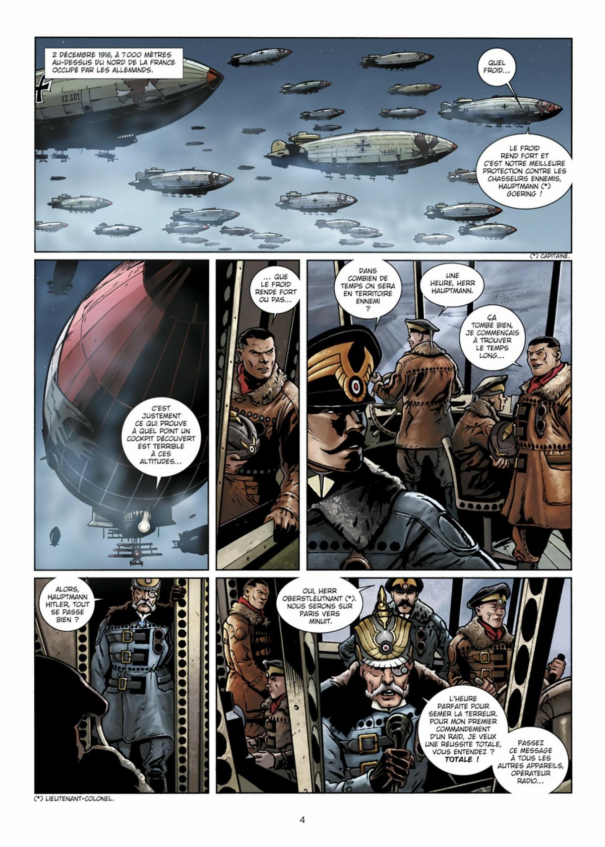 Parmi les pilotes se trouve un certain Adolf Hitler. L’escadrille de protection de son Zeppelin est commandée par Hermann Goering, qui ne rêve que d’en découdre avec le célèbre pilote français Guynemer