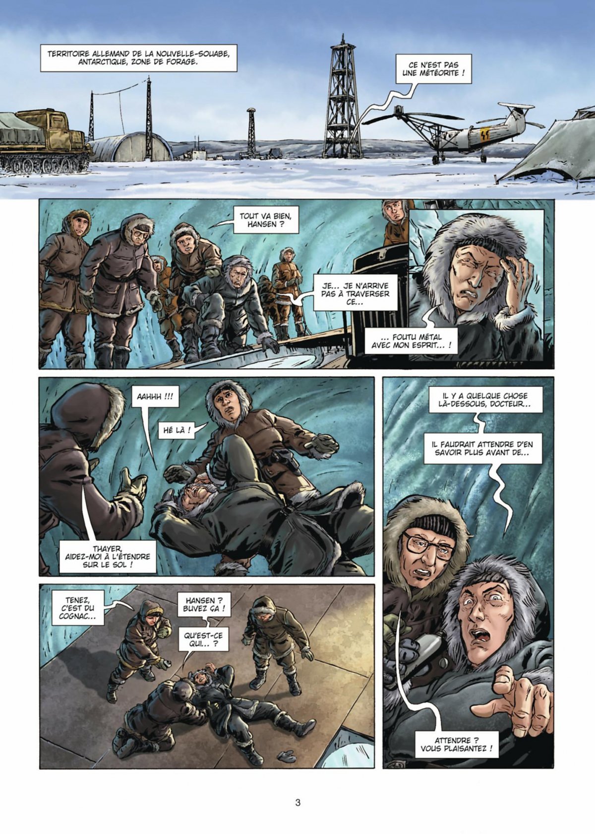 En ce début de 1947, Himmler peaufine un plan secret afin de prendre le contrôle du Reich. Un plan qui repose en bonne partie sur les recherches de l’Ahnenerbe, le "Bureau Occulte" du Reich, et sur celle de l’ultra secret Sonderbüro 13 qui vient d’être déplacé dans la base allemande en Antarctique, sous le contrôle de la SS. Là même où vient d’être découvert, sous la glace, un stupéfiant objet grâce à une carte géographique vieille de... 10 000 ans ! Mais, envoyée par Churchill et De Gaulle, contre l’avis des Américains, une petite escadre anglo française renforcée d’un porte-avion s’approche de la base dans le but de s’en emparer. Sans savoir que des U-boot cargos géants, avec dans leurs cales les Wunderwaffen de l’escadrille d’élite commandée par Murnau, filent eux aussi vers l’Antarctique pour arriver avant elle... Ces quelques Wunderwaffen suffiront-elles pour contrer les nouveaux chasseurs à réaction Sea-Vampires des Alliés ? Et les étranges méthodes de l’Ahnenerbe et du Sonderbüro 13 seront-elles adaptées face à ce qui attend depuis si longtemps tapi sous un kilomètre de glace ?