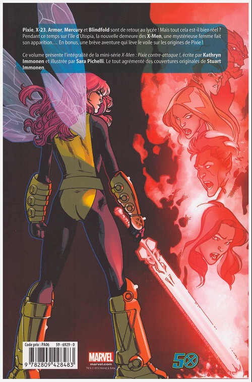 Fait assez rare pour être souligné, cet album est l’oeuvre d’un tandem féminin ! Kathryn Immonen (Wolverine & Jubilee, A Vs X) et la star montante Sara Pichelli (Ultimate Spider-Man) s’intéressent à la jeune Pixie, la mutante qui sert de service de téléportation instantané aux X-Men ! Lorsque la mère de Pixie vient exiger que sa fille quitte Utopia, l’île où vivent tous les mutants, c’est le prélude à de bouleversantes révélations. Qui est le père de la mutante ? Rien de moins que l’un des pires ennemis des X-Men !
