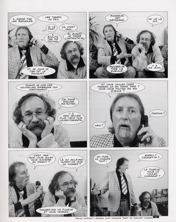 Voici un recueil de monuments de l’humour par une légende vivante de Fluide, les Photos-BD de Léandri. Attention, les Photos-BD sont loin des romans-photos, ces histoires mièvres pour magazines sucrés, car s’il utilise la photo, Léandri le fait en y adaptant tous les trucs de la BD classique : lettrages changeants en fonction de la nature des dialogues, bruits, onomatopées, lignes de mouvements... Il obtient ainsi un décalage étonnant entre la réalité des images et le nonsense des scénarios, où l’on voit des personnages vivants agir dans un monde parallèle, coincés entre la science-fiction et le dérisoire. Léandri y est fidèle a sa traque permanente du ridicule, du burlesque, du pathétique, bref du toujours drôle et irrésistible.