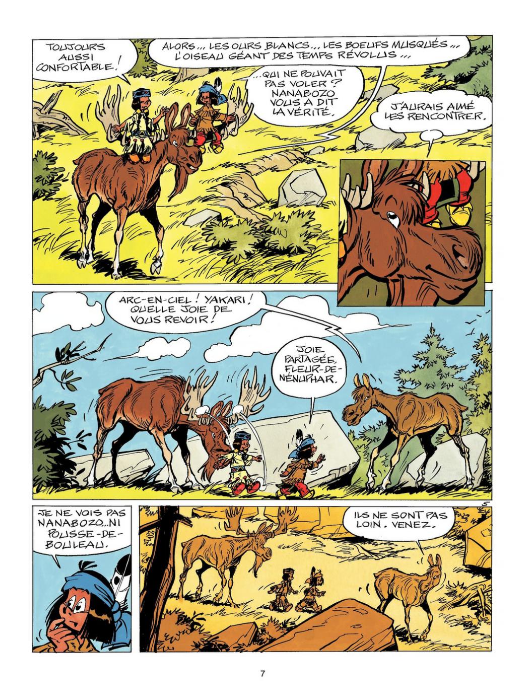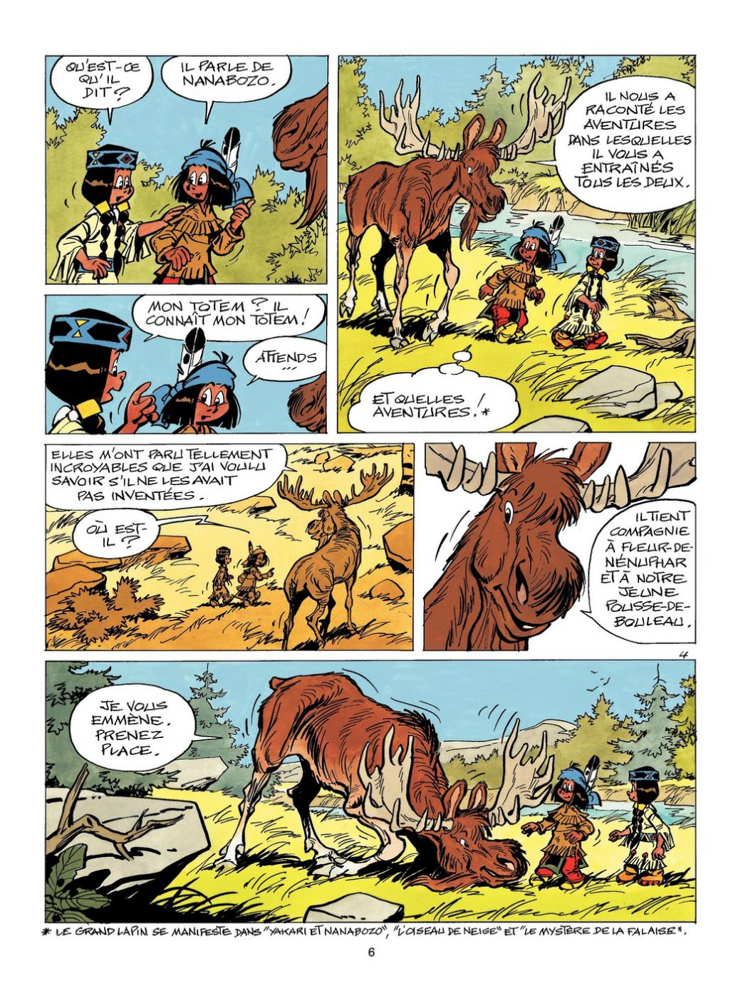 Nanabozo, le lapin magique totem d’Arc-en-Ciel, est de retour dans la grande plaine ! Comme à l’accoutumée, son arrivée fait rimer sagesse avec liesse. Car si le lapin géant prodigue de bons conseils, il aime aussi captiver son public avec ses tours extraordinaires. Sa plus grande surprise reste à découvrir : une authentique fresque rupestre témoignant de l’époque où existaient des castors géants !