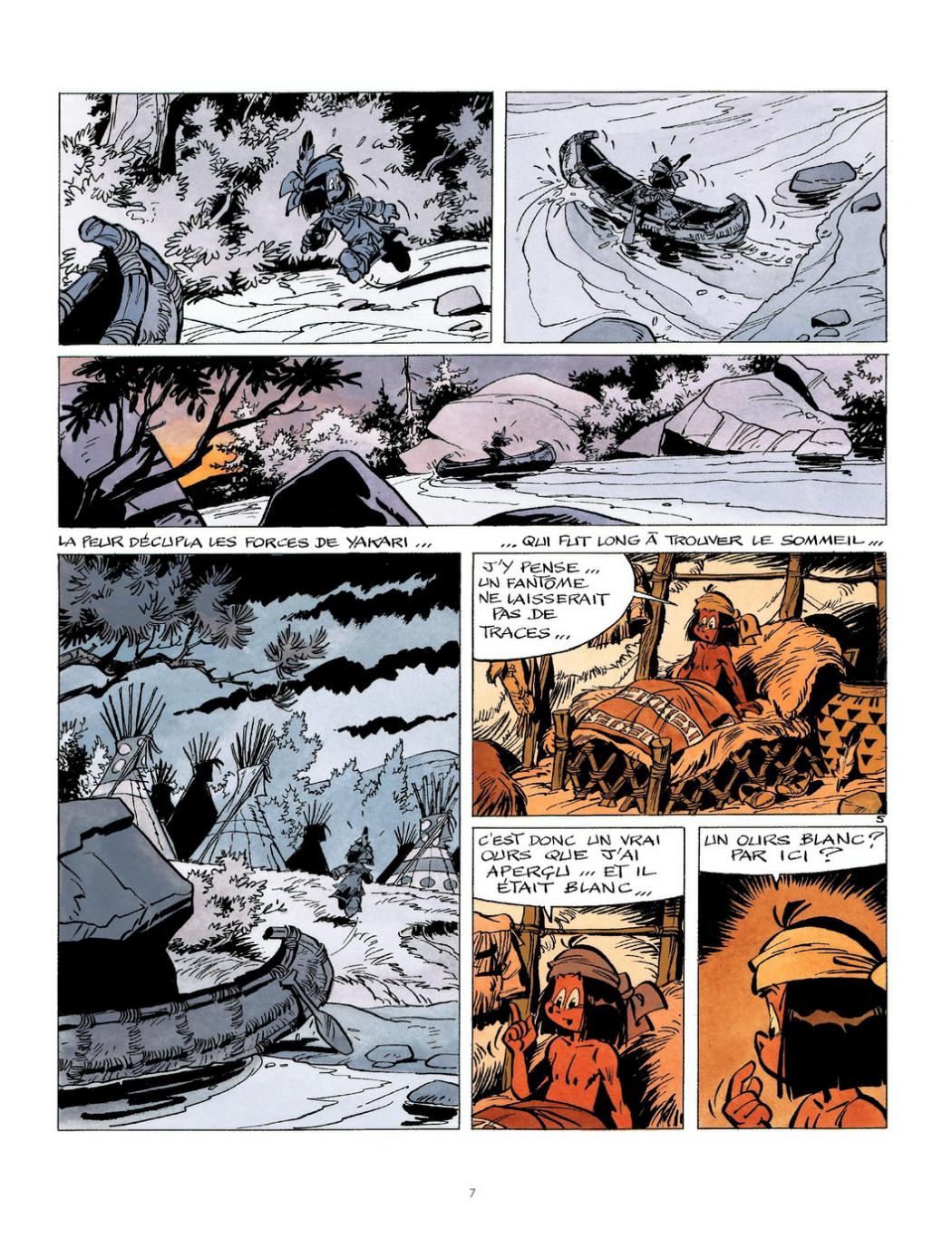 Alors qu’il vient de débarquer de son canoë, Yakari aperçoit une forme blafarde qui s’évanouit dans la forêt. Elle a l’apparence d’un ours...