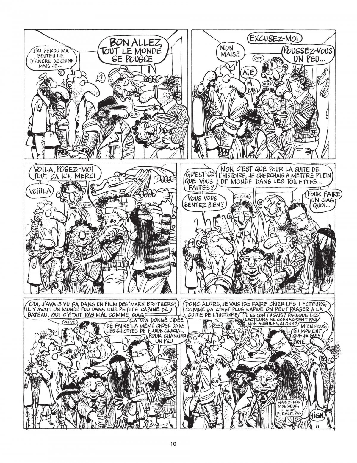 - il enferme toute l’équipe de Fluide Glacial dans les W.C. pour refaire le gag de la cabine des Marx Brothers,