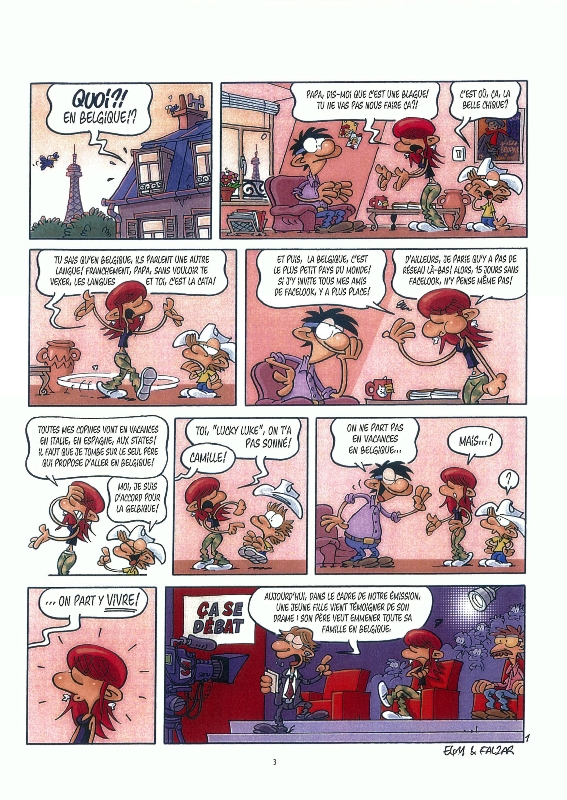 Mais pourquoi ont-ils fait ça ? On était si bien à Paris tous ensemble, papa, maman et cet ahuri de Merlin. Maintenant non seulement ils se séparent mais du coup je dois quitter mes copines, mon bahut, Geoffreypour aller m’installer à Liège. Dans Belgiqueland. Même que du haut de ses 8 ans Merlin croit que c’est un parc d’attraction. Même si papa est belge, on n’y arrivera pas : ils parlent pas comme nous, ils mangent pas comme nous, ils sont pas comme nous, les Belges.Une zone de conflit permanent, c’est pas un endroit pour moi, Camille, 14 ans. Au secours. Sur le mode du gag par page, Dans les yeux de Camille raconte le quotidien de la Belgique contemporaine, à la veille d’ événements historiques (abdication du roi, élection de juin 2014...), en se jouant des clichés, sans tabous, au travers des yeux d’une adolescente parisienne. Amusant et intelligent, Camille ravira tous les lecteurs de 9 à 99 ans.