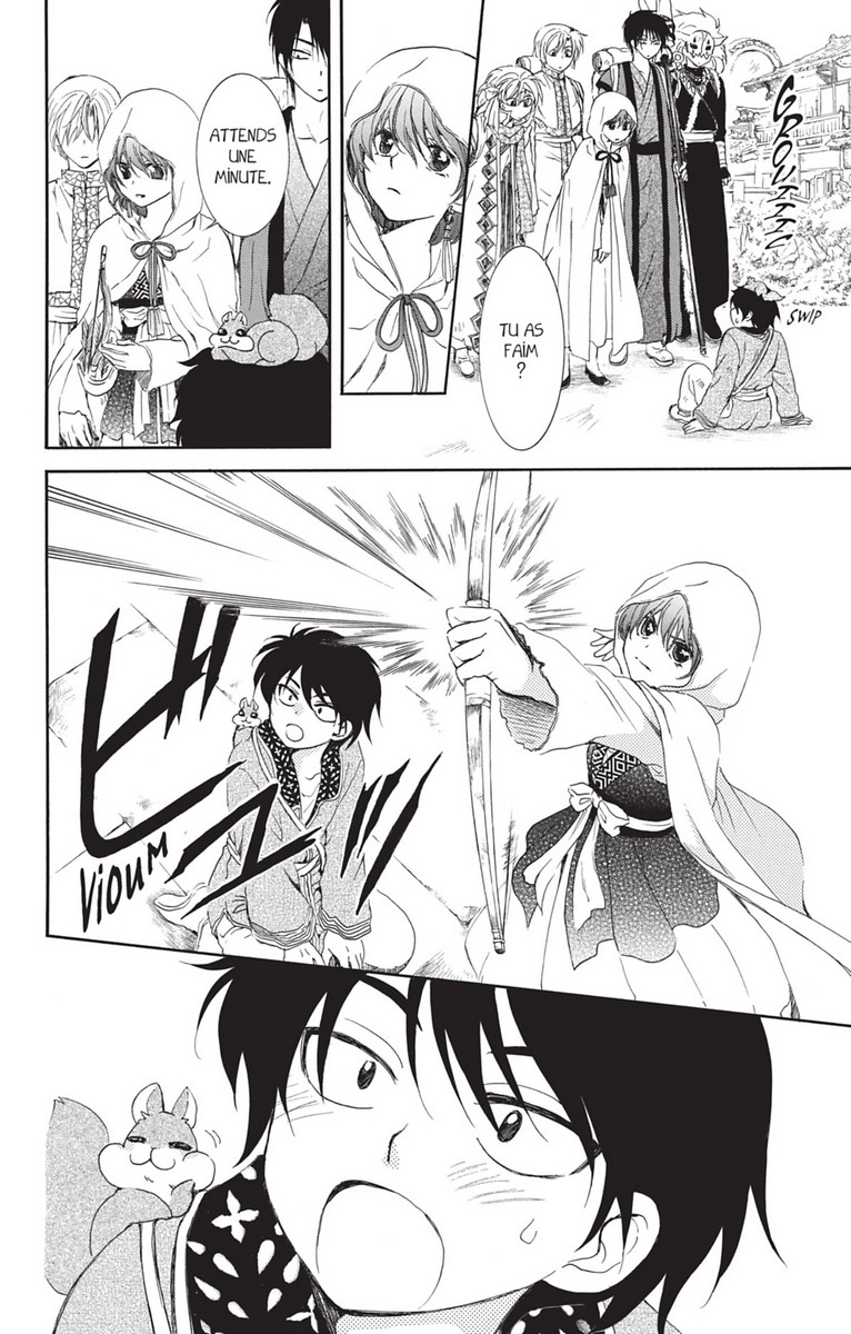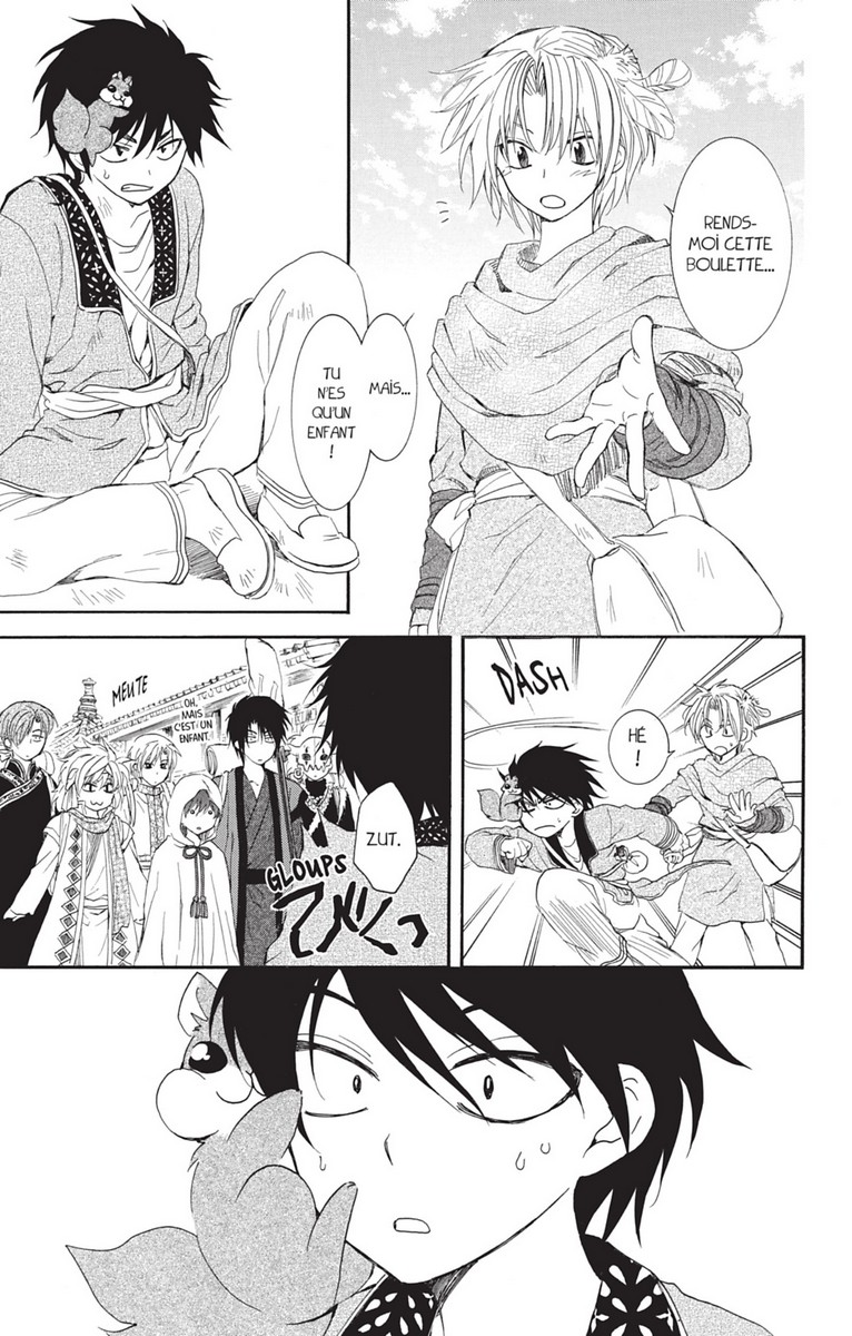Après avoir quitté les terres de la tribu de l’eau, Yona et sa bande se dirigent vers la tribu de la terre et arrivent dans un village situé non loin de la frontière avec le Kai. Ils y font la rencontre d’un jeune garçon prénommé Kalgan. Coincé dans le pays de Kôka, Yona et ses comparses l’aident à passer la frontière. Mais que vont-ils trouver de l’autre côté, dans le Kai du sud ?