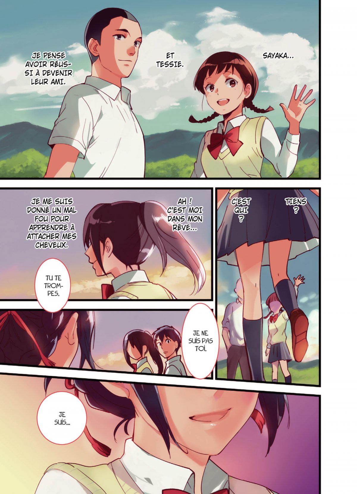 L’échange des corps s’est arrêté. Taki, désemparé, cherche un moyen de joindre Mitsuha. À l’aide des photos qu’il a vues à l’exposition Nostalgie, il essaie de retrouver l’endroit où Mitsuha pourrait vivre dans l’espoir de partir la retrouver...