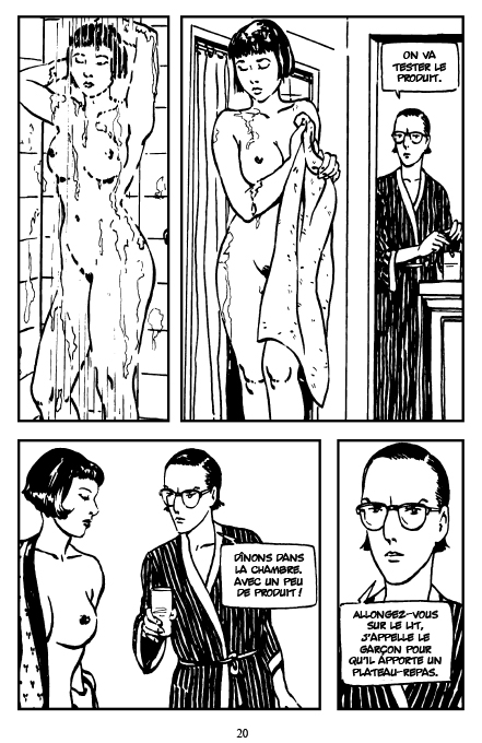 Pas folle, la mère Steiner : elle se garde bien d’expérimenter elle-même son médicament foudroyant ! Elle préfère engager une jeune Japonaise qui subira à sa place les assauts répétés des mâles rendus fous par les effluves aphrodisiaques