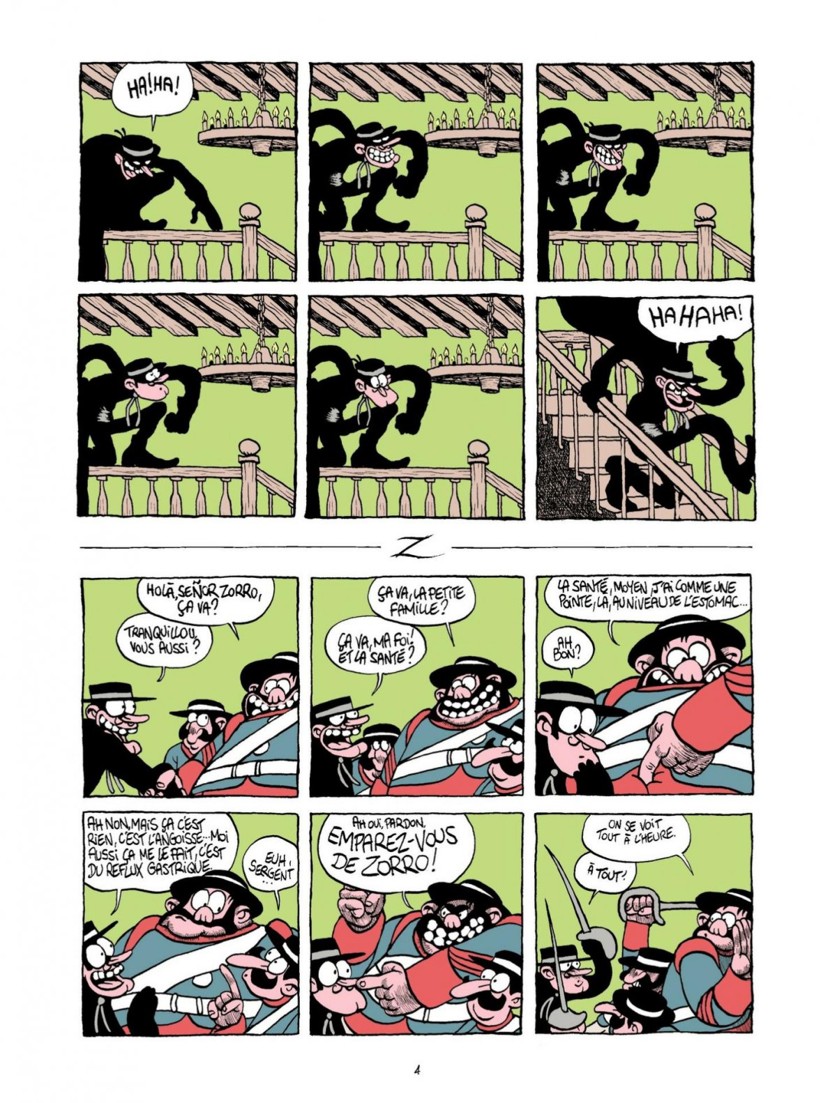 Z comme don Diego, dont Fabcaro et Fabrice Erre présentent le 1re tome, est une parodie à mourir de rire de Zorro. Don Diego de la Vega, alias Zorro, c’est un peu comme Clark Kent, alias Superman : pour mieux jouer les super-justiciers masqués, ils s’abritent, dans la vie de tous les jours, derrière une personnalité aussi neutre et insignifiante que possible. Et comme on le découvre dans ce 1er épisode de Z comme don Diego, ce n’est pas toujours simple ! Don Diego a bien du mal à garder secrète sa véritable identité, surtout lorsque son père, don Alexandro, ivre mort, hurle à qui veut l’entendre que son fils est le célèbre Zorro ! Don Diego lui-même serait bien tenté de révéler sa double personnalité lorsqu’il courtise la séduisante Señorita Sexoualidad... Tous les protagonistes de Zorro, de Bernardo au sergent Garcia en passant par Tornado, se succèdent, pas forcément sous leur meilleur jour, dans Z comme don Diego, une adaptation loufoque et délirante de la mythique série.