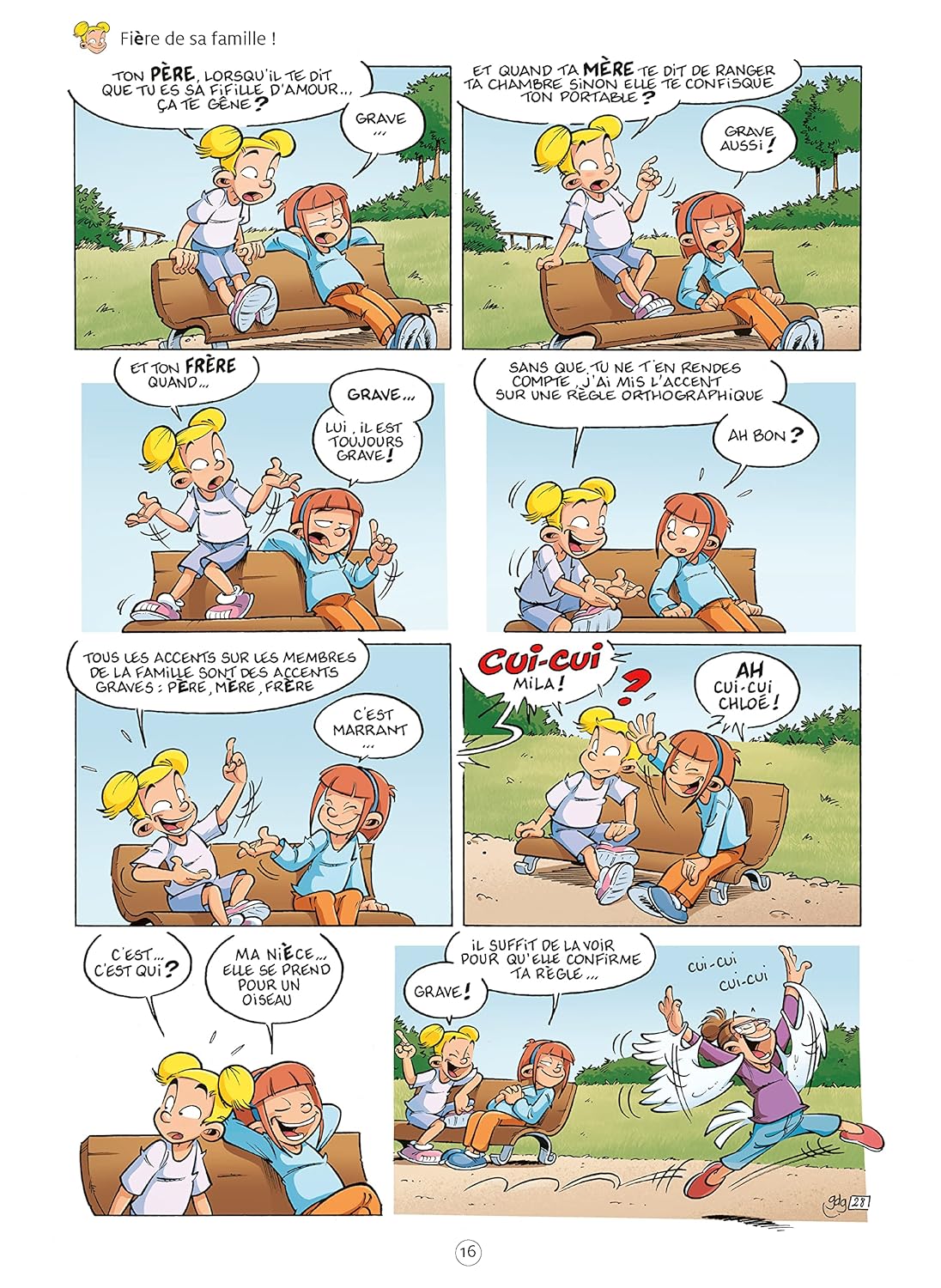 Cette petite futée a plus d’un tour dans son sac et, avec elle, l’orthographe, c’est bien plus drôle que les dictées. Une histoire après l’autre, son imagination vient à bout des exceptions et rend limpides les difficultés orthographiques. Puisqu’il suffit de lire cette B.D. pour progresser, il n’y a plus à hésiter !