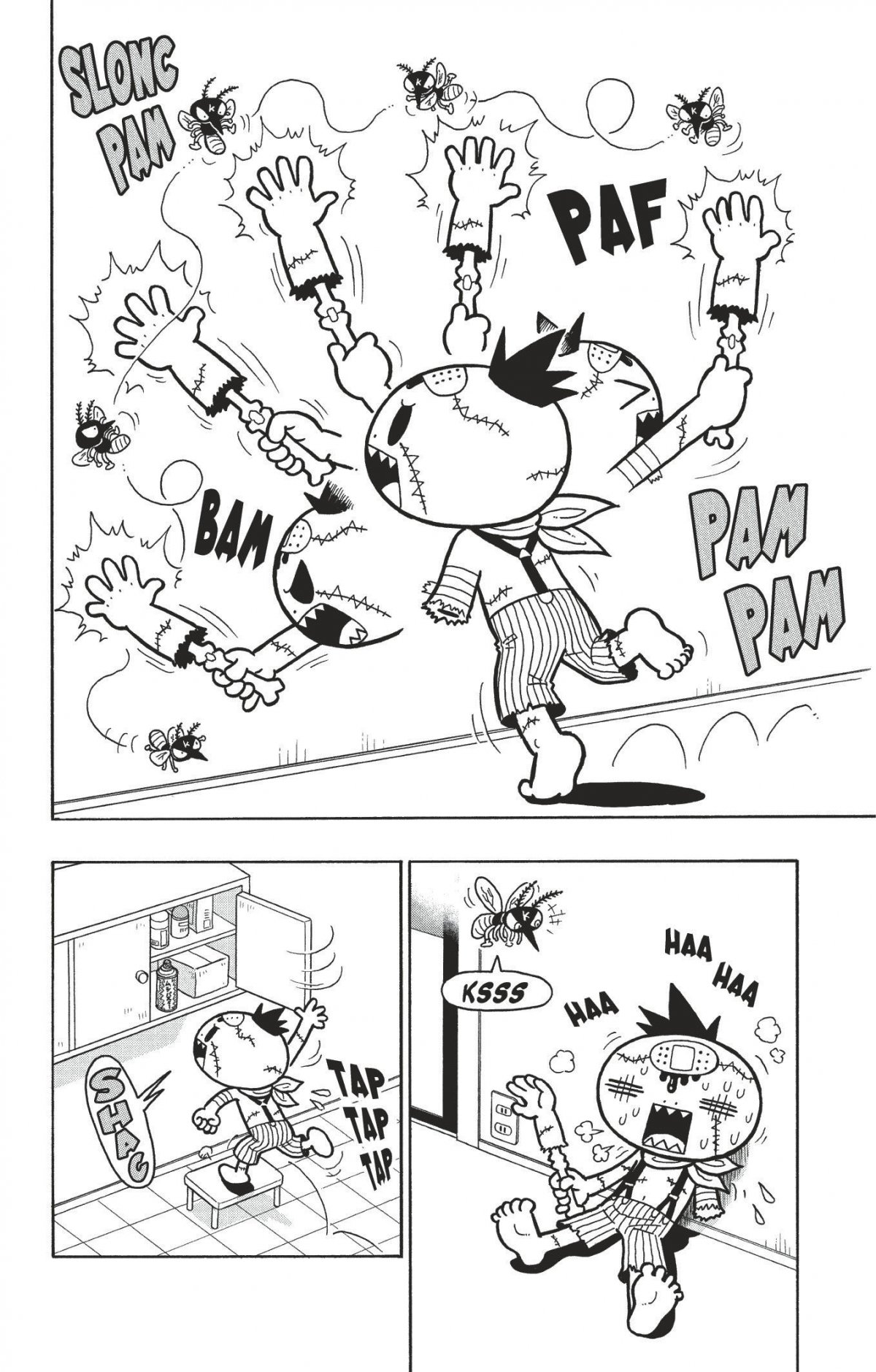 Encore plein d’aventures à rebondissements dans ce volume de Zozo Zombie. Il se fait ainsi attaquer par un moustique géant, livre une battle de transformisme avec un robot, lutte à mort contre une fleur carnivore, mais pire que tout : il doit faire un régime, et pas question de toucher au donut abandonné dans la cuisine ! Heureusement, Zozo a le talent de se faire des amis et se lie ainsi avec un petit nuage tout mignon. Mais catastrophe ! Voici que débarque en ville... un chasseur de zombies ! Comment échapper à cet inattendu prédateur sanguinaire quand on est un gentil enfant zombie ?