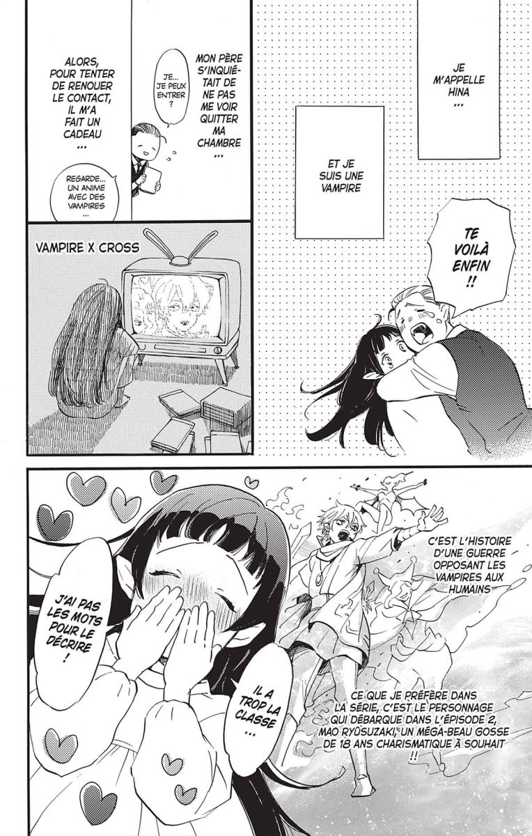Hina Alucard est une vampire, mais surtout une otaku ! Elle préfère fantasmer sur le beau gosse de son anime préféré plutôt que de planter ses crocs dans des humains bien réels, n’en déplaise à son père... jusqu’au jour où elle décide d’emménager au Japon pour profiter pleinement de sa vie de fangirl. Elle découvre alors avec stupeur que son voisin de palier ressemble comme deux gouttes d’eau à son personnage d’anime favori. En plus, le corps de ce dernier dégage une odeur extrêmement attirante pour les suceurs de sang... C’est le début d’un quotidien particulièrement mouvementé pour notre jeune vampire !