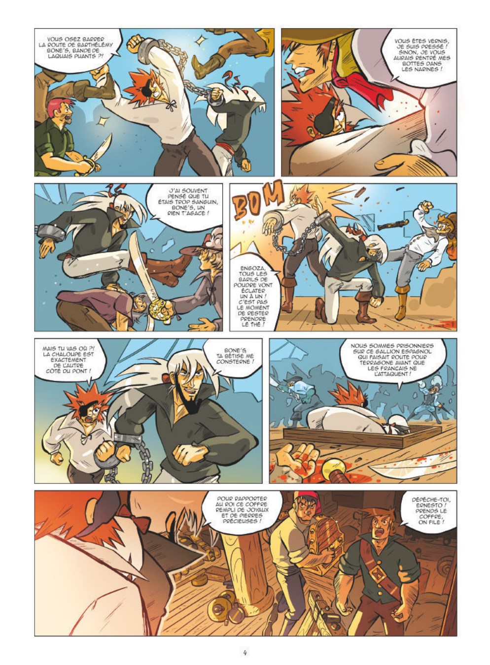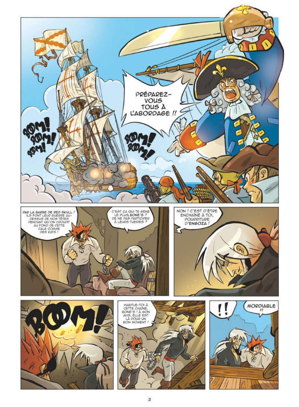 Un rêve, un destin : devenir pirate ! Alban, jeune héritier d’une famille bourgeoise de Bordeaux, a toujours senti vibrer en lui l’appel du large. Son destin bascule le jour où, à la mort de sa mère, il apprend qu’il n’a jamais connu son véritable père. Que celui-ci était un pirate, ces aventuriers des mers qui n’hésitent pas à braver les dangers à la recherche de fabuleux trésors. Bien déterminé à suivre ses traces, Alban embarque alors comme mousse dans l’équipage du capitaine Engoza. Il y fait la rencontre de Joao, un petit garçon débrouillard qui deviendra son meilleur ami. Ensemble, ils partiront à la recherche du trésor de l’île aux diables. Un trésor maudit et voilé de mystère dont la véritable nature n’est connue que du capitaine. Que peut bien leur cacher Engoza ?Prenez le large avec les héros de L’Île aux diables ! Une nouvelle série jeunesse au dessin rond et dynamique qui, dans la lignée de la saga culte Pirates des Caraïbes, mélange l’imagerie historique et populaire du pirate à des éléments fantastiques et nous livre un cocktail détonnant d’action et d’aventure.